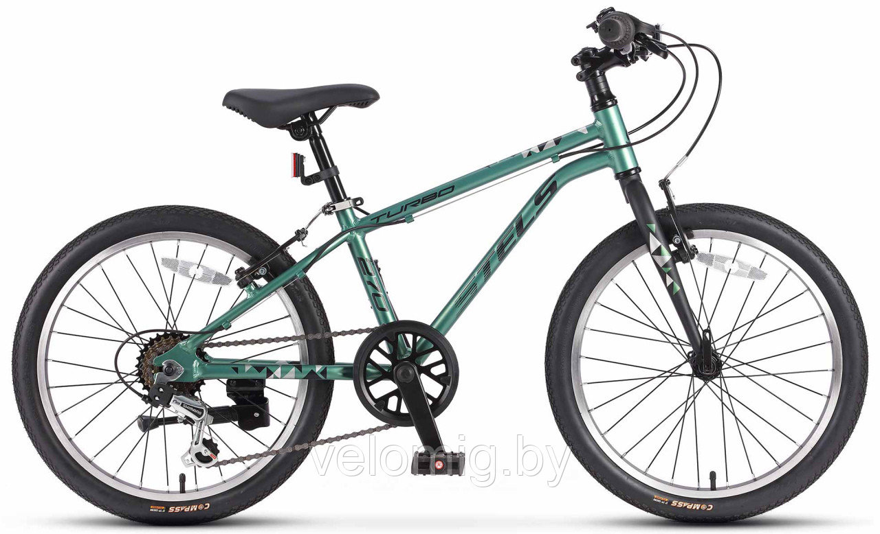 Stels Turbo 270 V – детский велосипед, предназначенный для мальчиков. Модель адаптирована для катания по хорошим и ровным асфальтированным дорогам или грунтовым загородным и парковым дорожкам. Рама сделана из стали что придает велосипеду огромную прочность. Двадцатидюймовые колеса, установленные на модели, являются оптимальным решением для детского велосипеда. Колеса имеют прочные облегченные двойные алюминиевые обода. Модель имеет 7 скоростей, позволяющих выбрать подходящий режим езды, ободные механические тормоза, позволяющие вовремя остановить велосипед. Тормоза просты в использовании и ремонте. Этот велосипед идеально подойдет для начинающих, но уже умеющих кататься мальчиков.